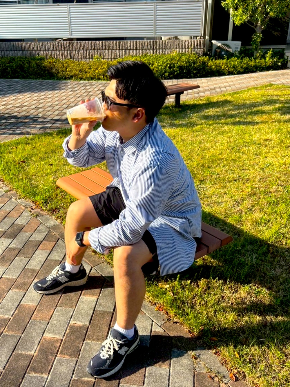 初夏の気温ですよ! ベンチで休んでるとこを📸 休憩時間も大切ですよね🫨