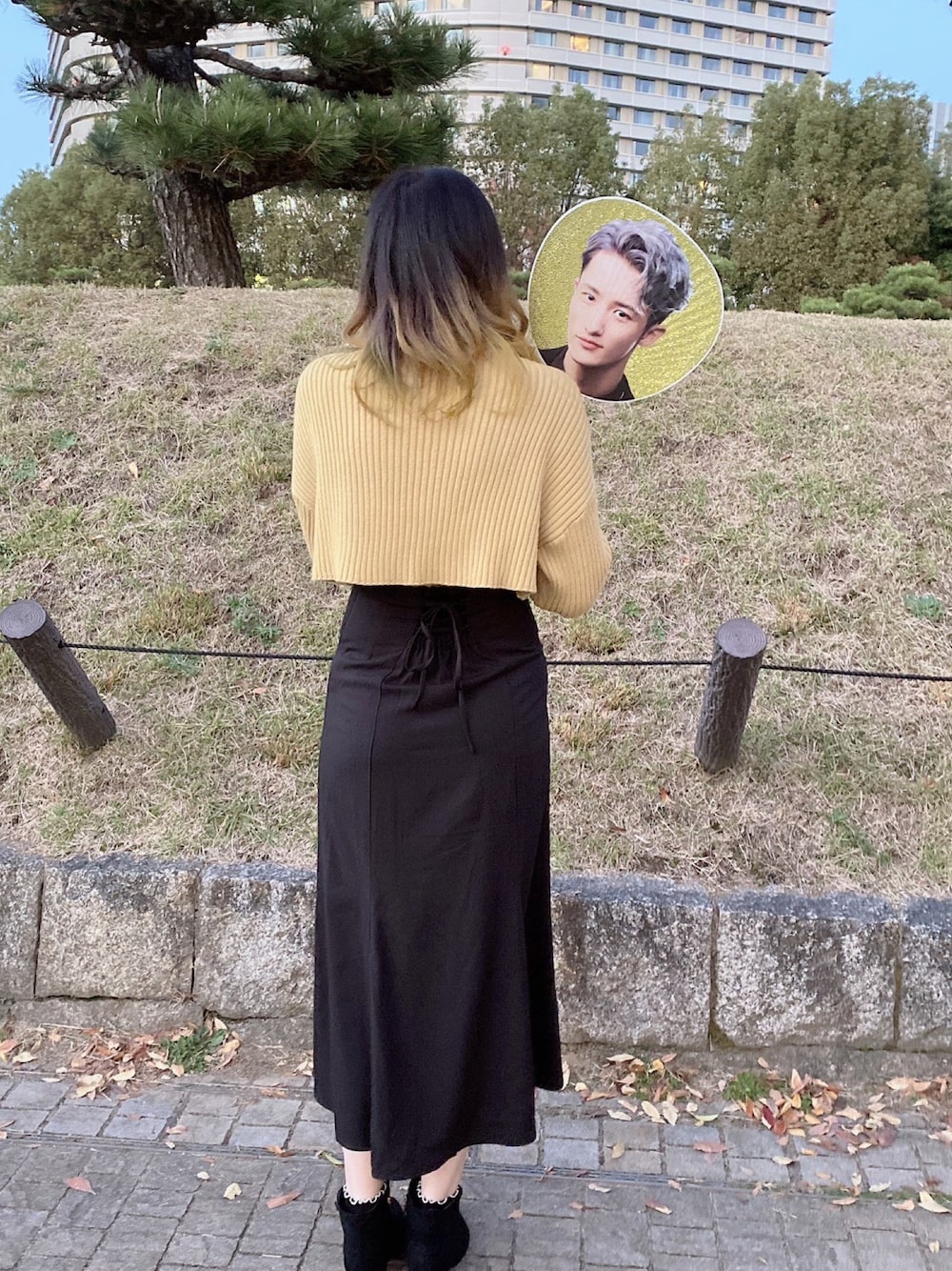 スノマニ参戦コーデ クロップド丈のニットにハイウエストのスカート さすがに少し寒かったけど今の時期だから耐えれた笑