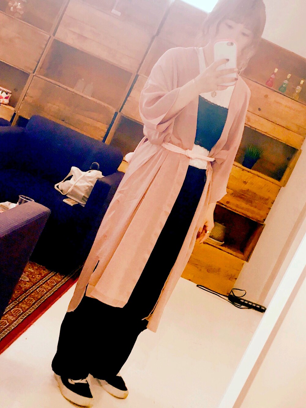 この前の撮影の時です。 forever21で一目惚れしたダスティピンクのガウンに、kiloshopで買った、帯締めをして、着物風コーデです。 GUのTシャツにGUのパンツ 数年前にh&mのlingerieコーナーで見つけたブラトップ 激安プチプラコーデですね。 さすがに安すぎるので、靴と時計はしっかりしてます(笑) 後ろは見えないけど、ヘアアレンジもちゃんとすると、安くならないですね〜