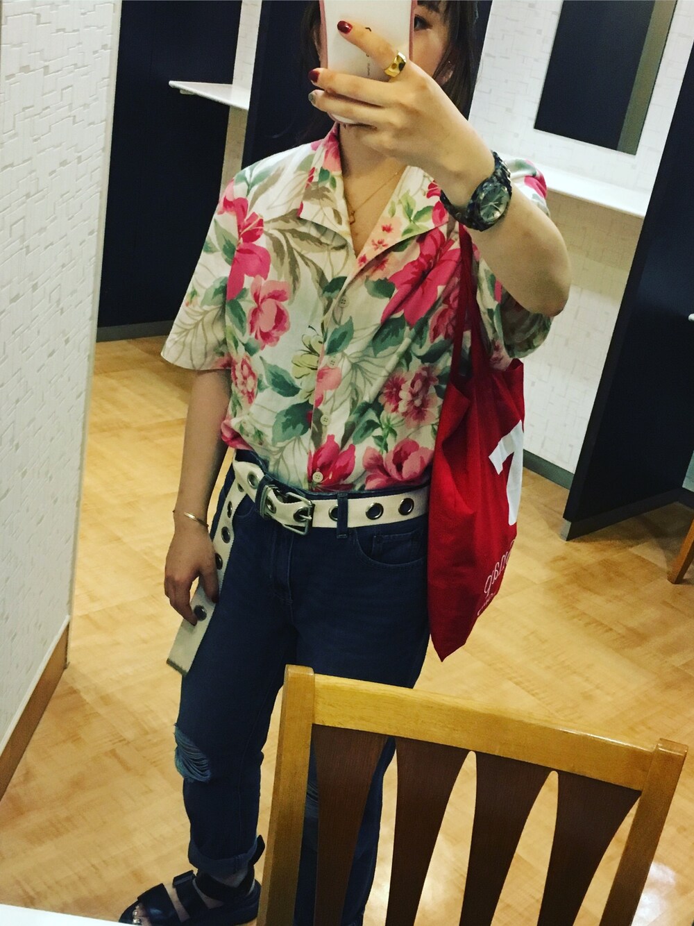 夏やで〜 昨日guで990円でかったブラフィールとデニム。 ありがたい。 若い子をまねて、ベルトを垂らして見ました。ババアなのにごめんなさい。 アロハシャツメインにしたいのでシンプルに。 やっぱりマーチンかわいいな〜 買ってよかった!!!