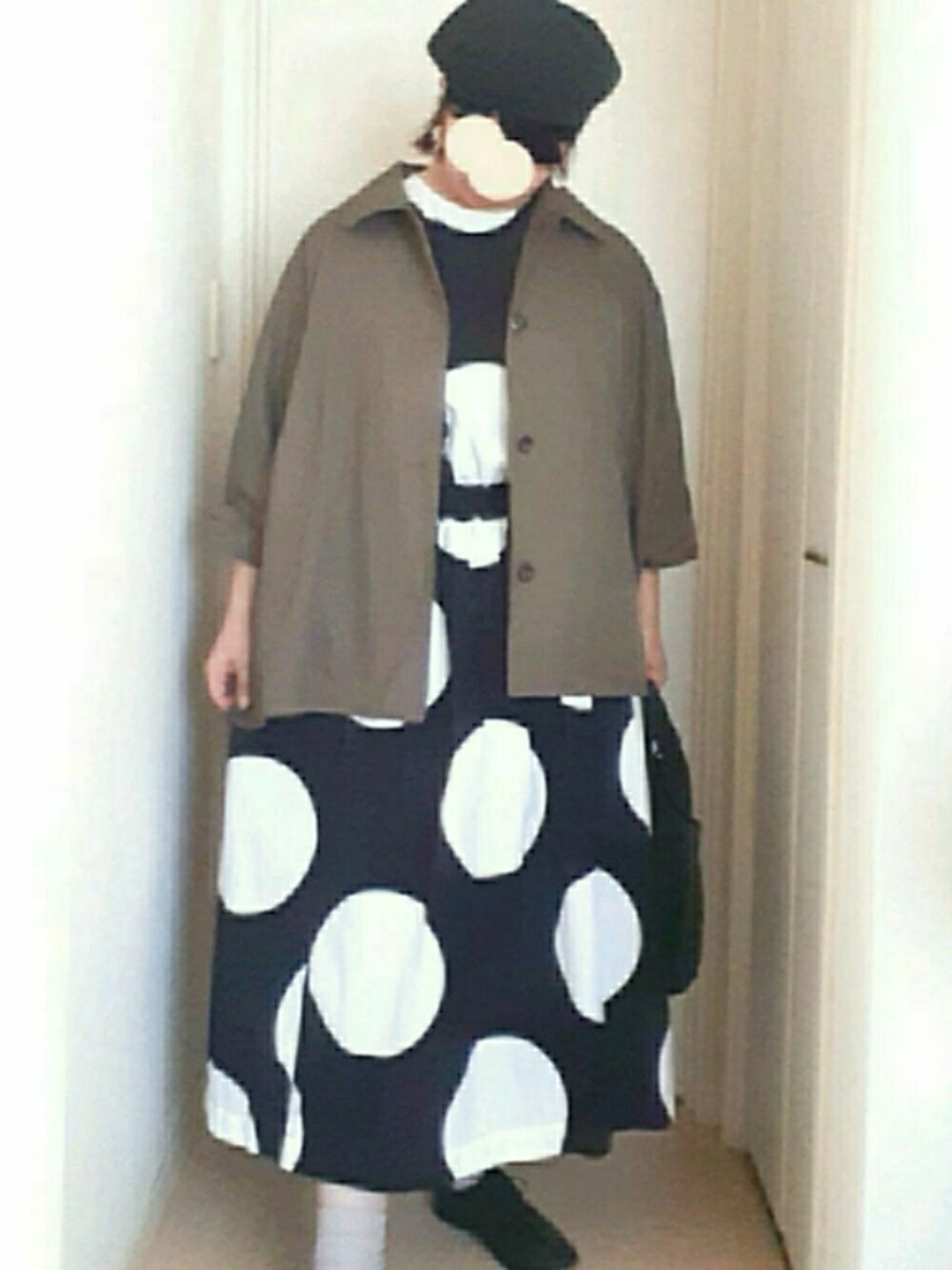 ichiのデカドット ワンピースではありません フレンチスリーブトップス スカートインしてます そもそも デカドットスカートを探していて モデルさん この着こなし なんてこった ワンピースもあるのですが 形がかわいすぎて こちらの方が程よし 秋なのでジャケット羽織って イチ三昧 ただ トップス…Aラインで丈長め スカートの中 ゴワゴワ感最上級
