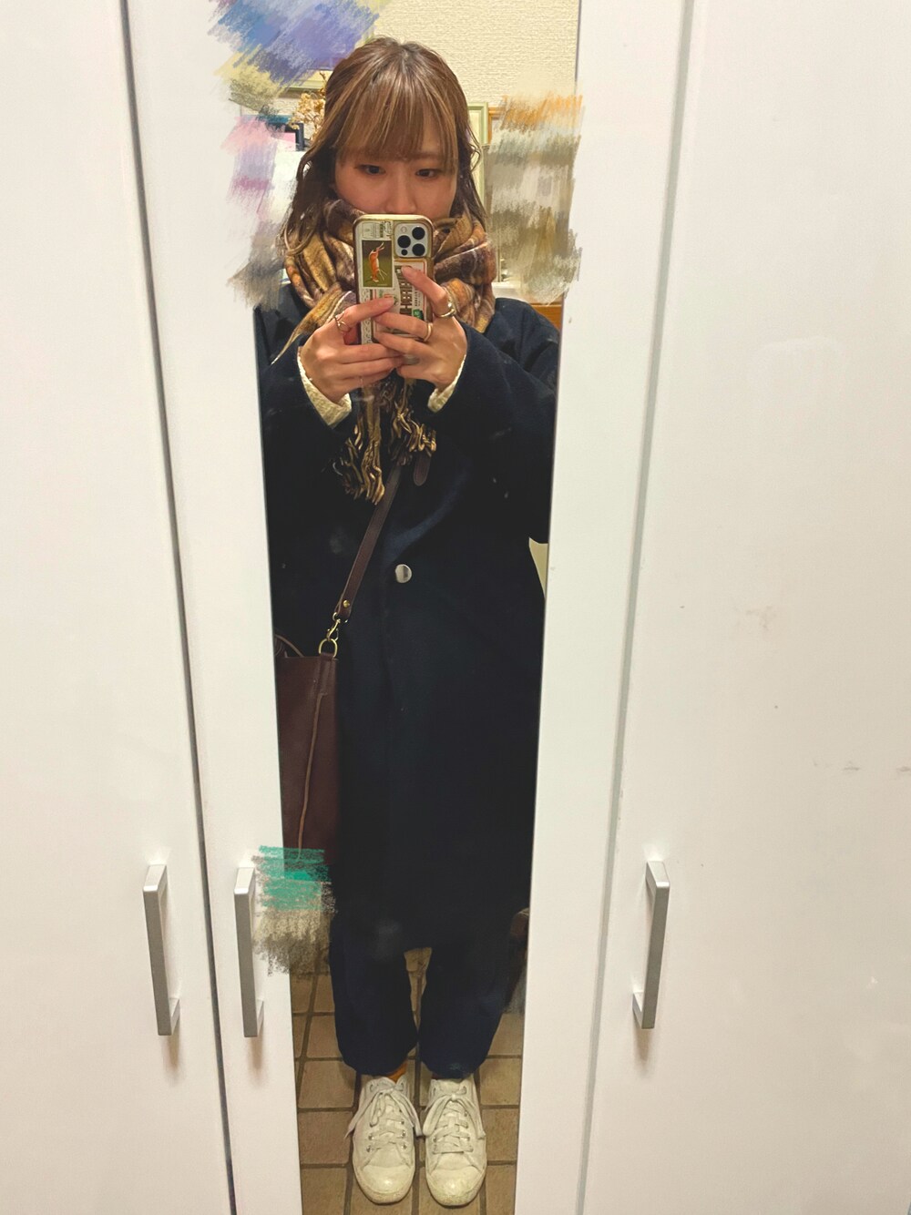 お友達に会った日 マフラーの色、かばん、靴下、全部同系色で統一してみたりして☺️ またまたラルフローレンのヴィンテージデニム。 久しぶりにヴィンテージのリングも💍 靴下もマフラーも美好ちゃんのやつ ネックレスの重ね付けってやっぱりかわいい🥰