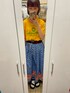 柄スカートもベルトを巻けば カラーTシャツといい感じ✌️ このスカート、絶対黄色と合うと思ってたからやってみたらビンゴー!!うれしいー! ちゃっかり下にデニム履いてるレイヤード大好き芸人