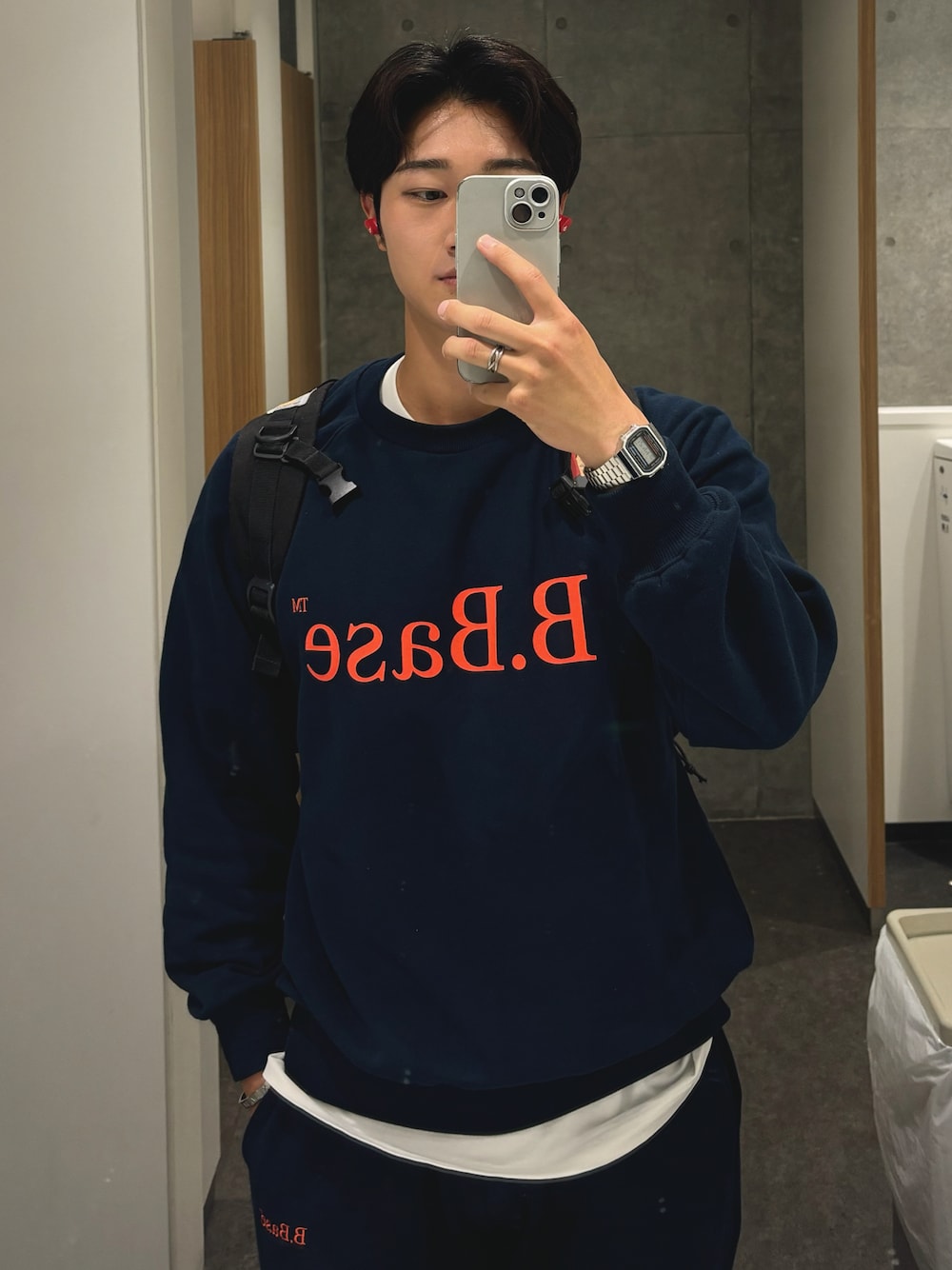 Broken Baseの上下スウェットでコーデ組みました!オレンジの文字がアクセントになってて、ちょっと小洒落た雰囲気になるのが大好きです✌️