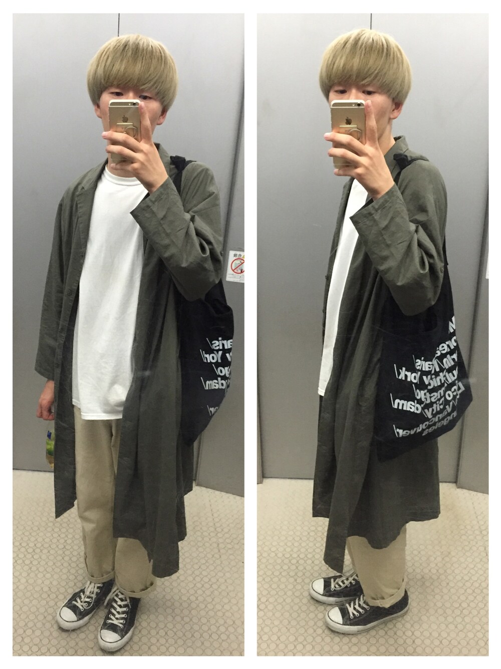 カーキのはユニクロのレディースです。 上から撮ったらさらに頭でっかく写る〜💂🏾
