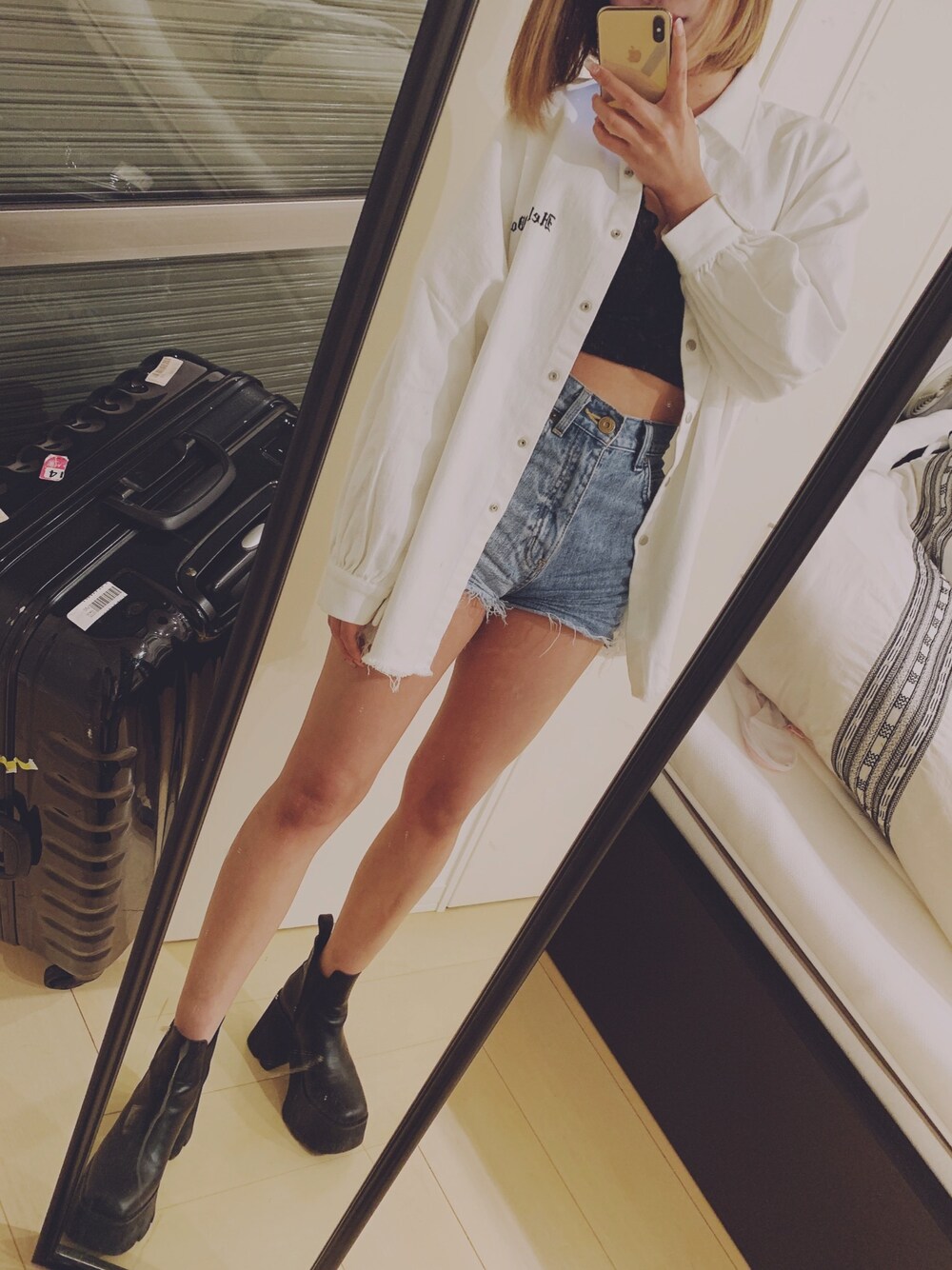 この時期にぴったりのBIGシャツ❤️ サイズ感がめちゃめちゃかわいい😍 ボタン閉めてシャツワンピにしても かわいい✨💗