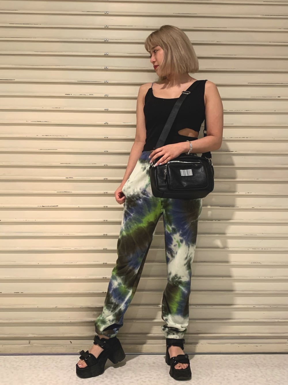 楽チン夏コーデ🦋✨ キャミはパット付きで1枚で着れちゃう💜 ウエスト部分の肌見せもかわいい💗 ジョガーPTのタイダイ柄も派手かわ💖