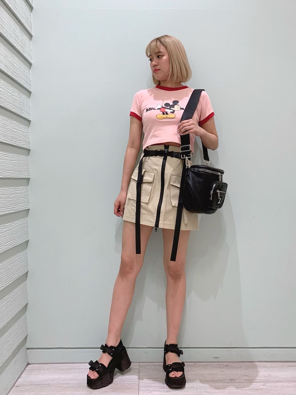 Disney collection🏰✨ ピンク×赤の配色がかわいい❤️❤️ ストレッチきいてて着心地もいい😍 夏っぽくミニスカート合わせ🦋