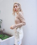 FIG&VIPER_YUNAのTシャツ/カットソー「リブスリットショートロンT」を使ったコーディネート