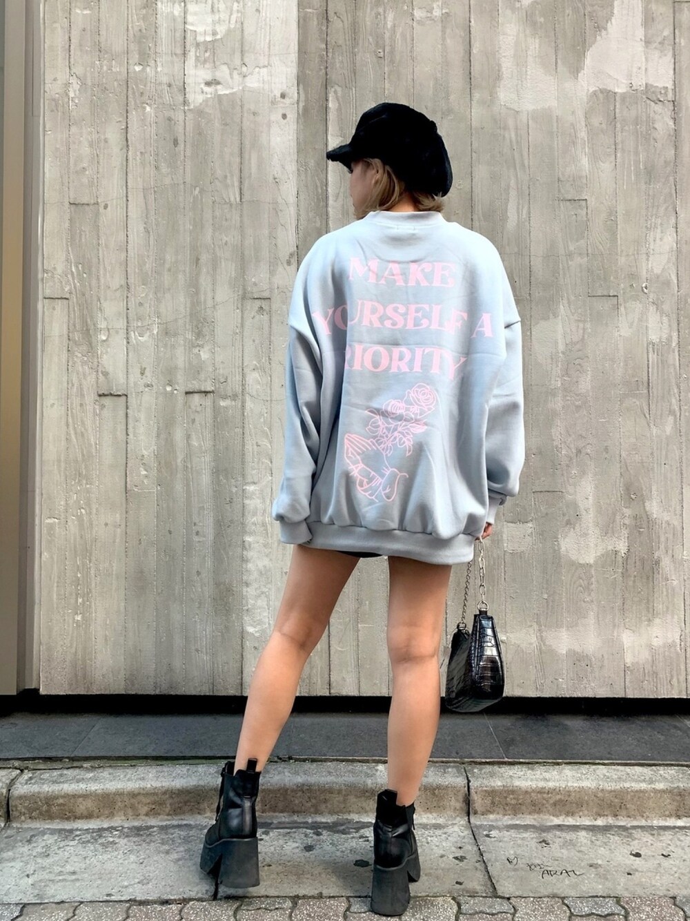 水色×ぴんくロゴが可愛すぎなスウェット💙💖 裏起毛でもこもこあったかい🐏❤️ ワンピぽく1枚できてみました✨✨