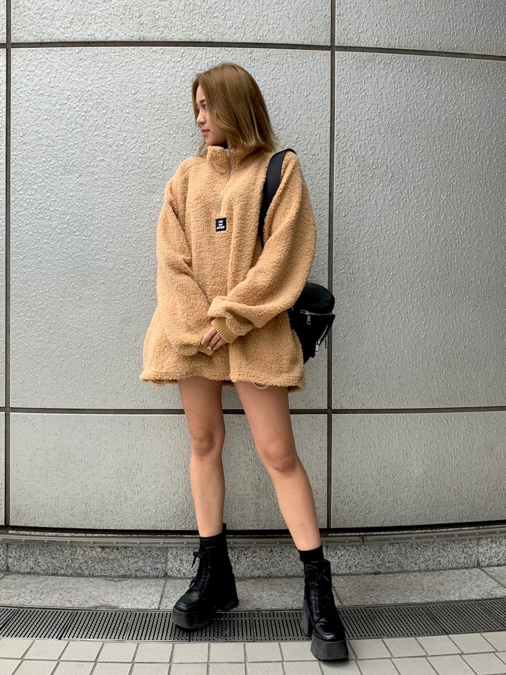 もこもこトップス🧸❤️ 大きめなのでワンピぽく着ました✨ ZIP付きのハイネックが暖かいし かわいい🥰💓
