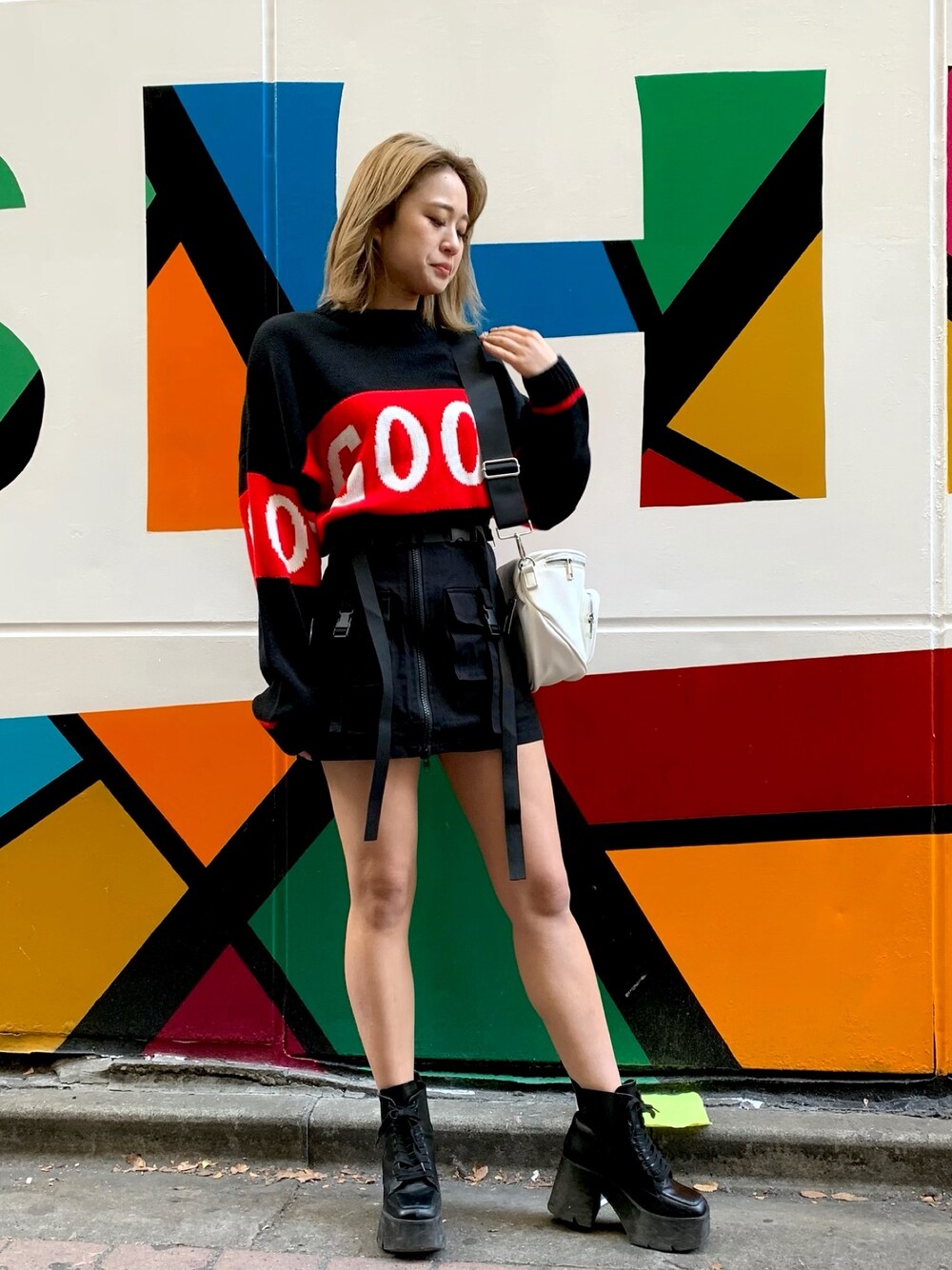 BLKにREDが映えてかわいいGOODニット❤️ INもしやすい生地感なので、 ミニスカートにINしてあわせました✨❣️ 着回しめちゃめちゃ効きそう🥰💖