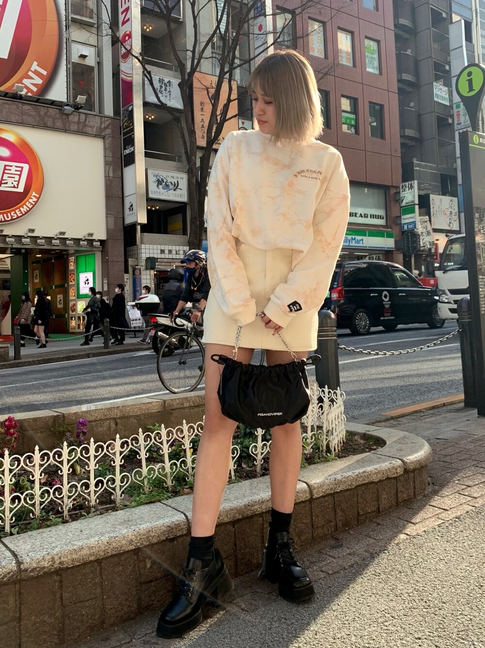 ワントーンコーデ🤍🤎 ベージュのタイダイが珍しくてかわいい💓 春っぽく着回し抜群なホワイトのスカートと合わせました❤️✨ スウェットは大きめだから 1枚でゆるっと着ても可愛いな〜❤️❤️