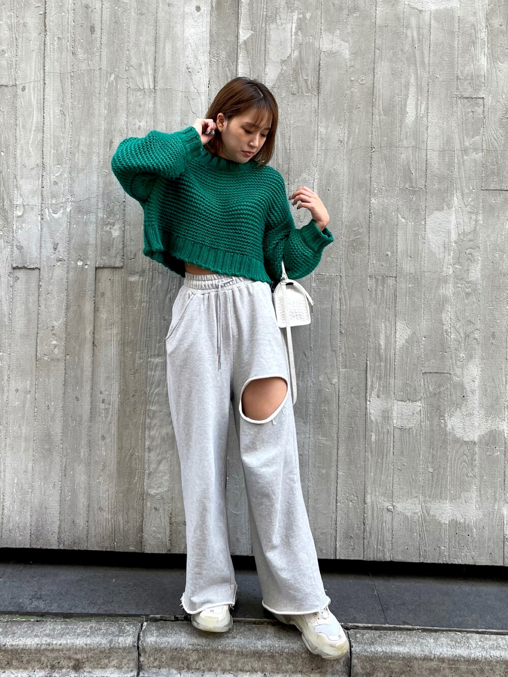 らくちんコーデ🐸 オールシーズン使えるスウェットワイドPTは 秋冬はニット合わせもかわいい💚 ハイウエストで脚長効果も抜群です💗