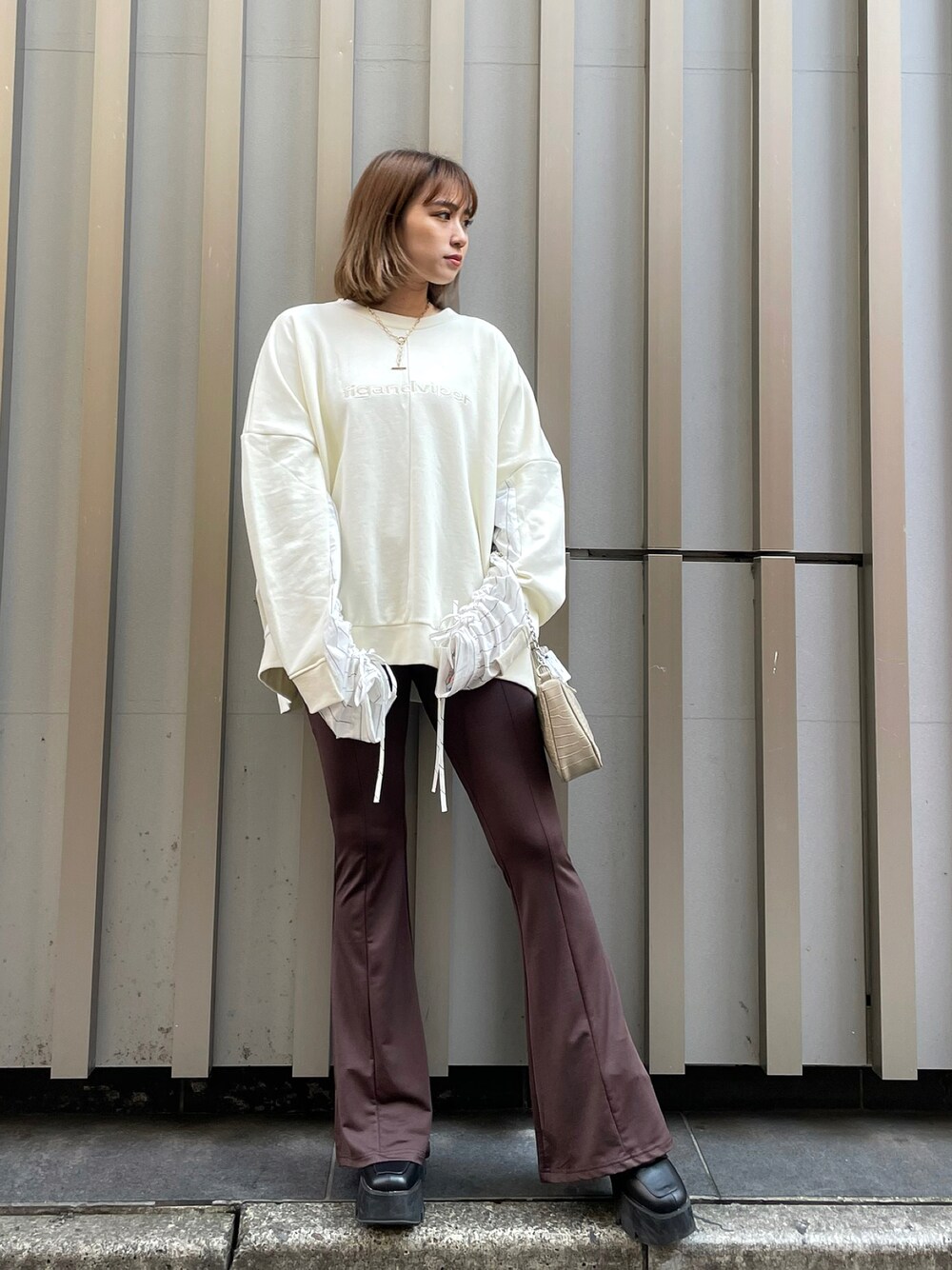 ゆるゆるスウェットに激盛れフレアパンツの 鉄板コーデ🤎❤️ 袖のデザインがめちゃめちゃかわいい❤️ アイボリーとブラウンで少し女の子ぽいカラーで合わせました❤️🤎