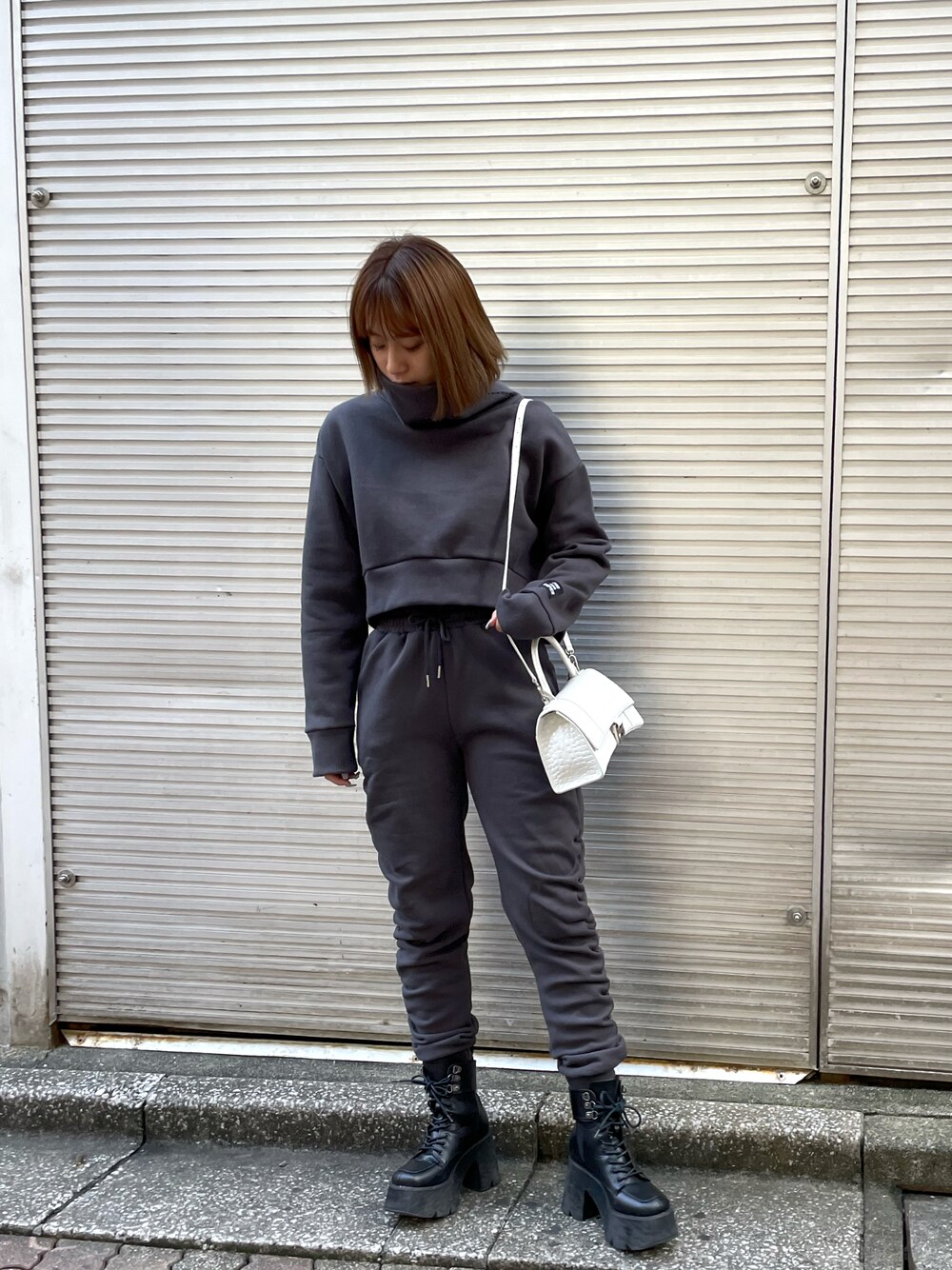 あったかセットアップ❤️ どっちも裏起毛であったかすぎる🥰 スウェットでは珍しいボリュームたっぷりハイネックもかわいい💖