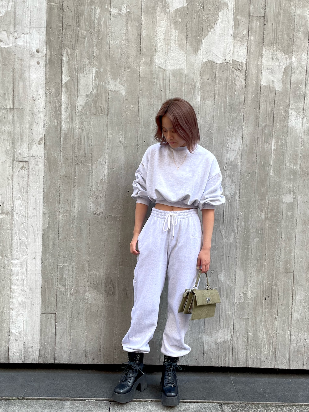 楽ちんセットアップコーデ🧡 ライトグレーが春っぽい🌸 ウエストがきゅってなってるので スタイルアップ効果バツグンです✨✨ そでのくしゅくしゅもかわいい🥹❤️