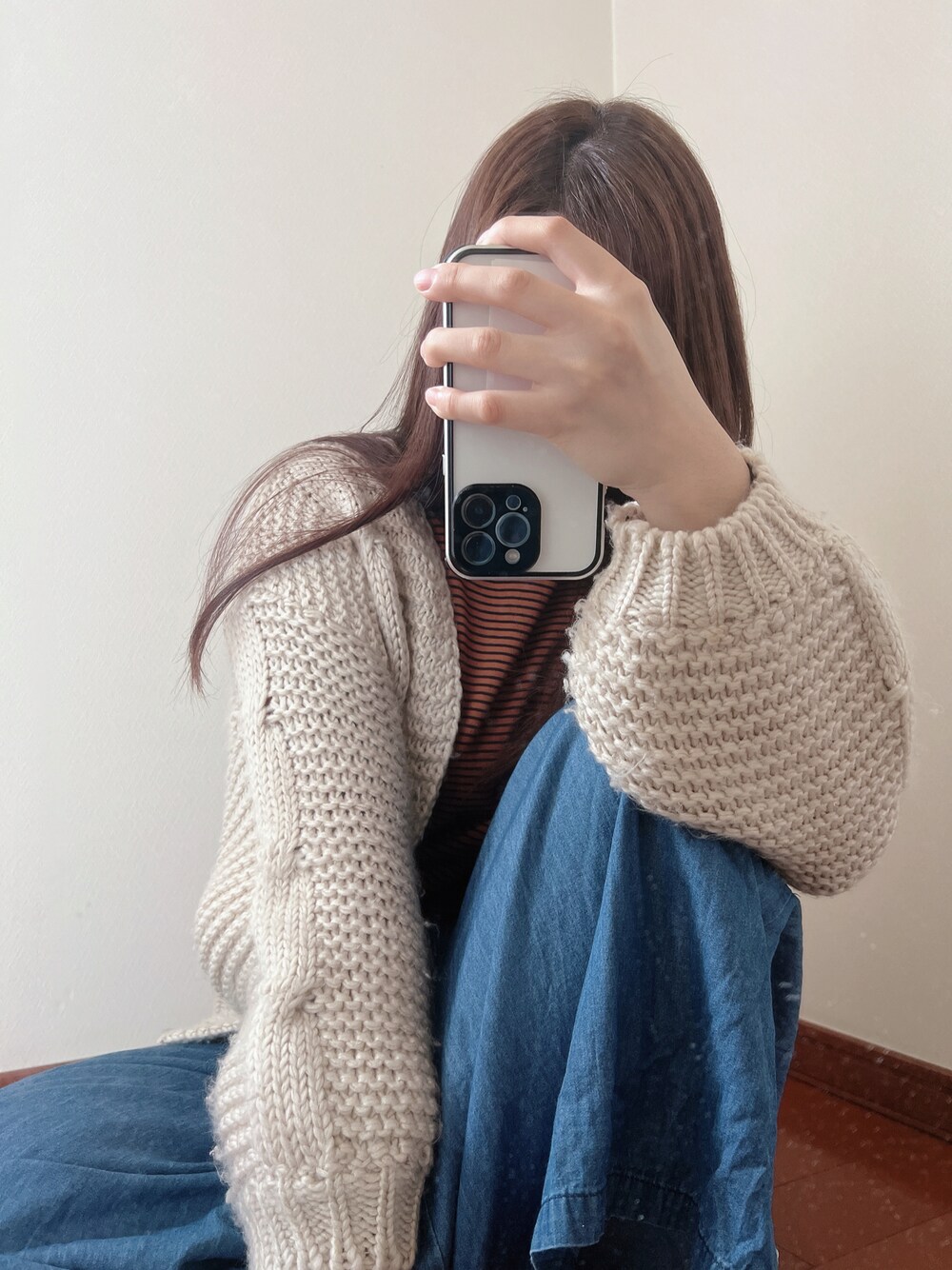ベージュのカーディガンはお気に入りのもの🧶
