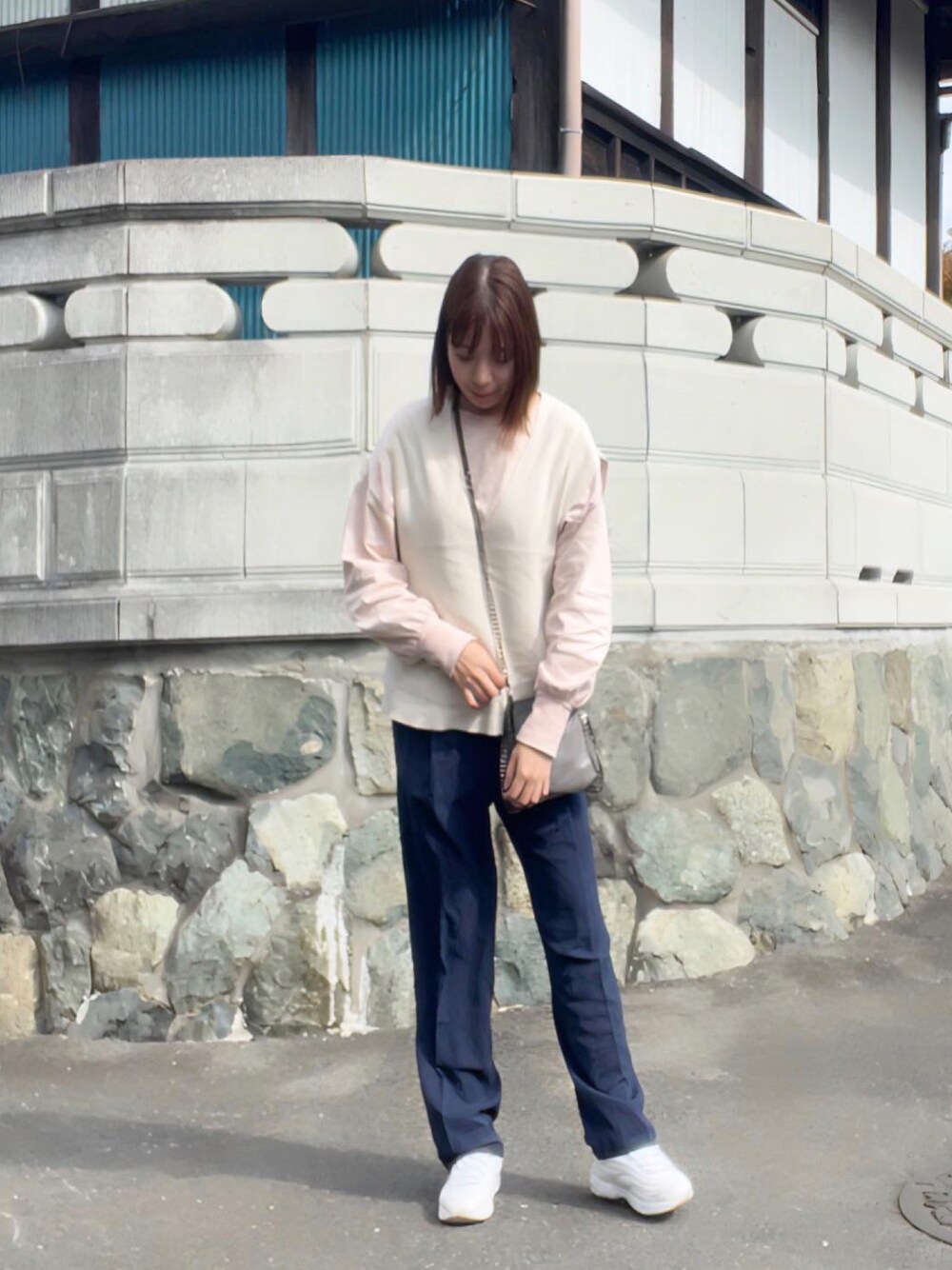お気に入りのピンクのトップスを ベストと合わせてカジュアルに! 動きやすさと歩きやすさ重視したコーデ❤️