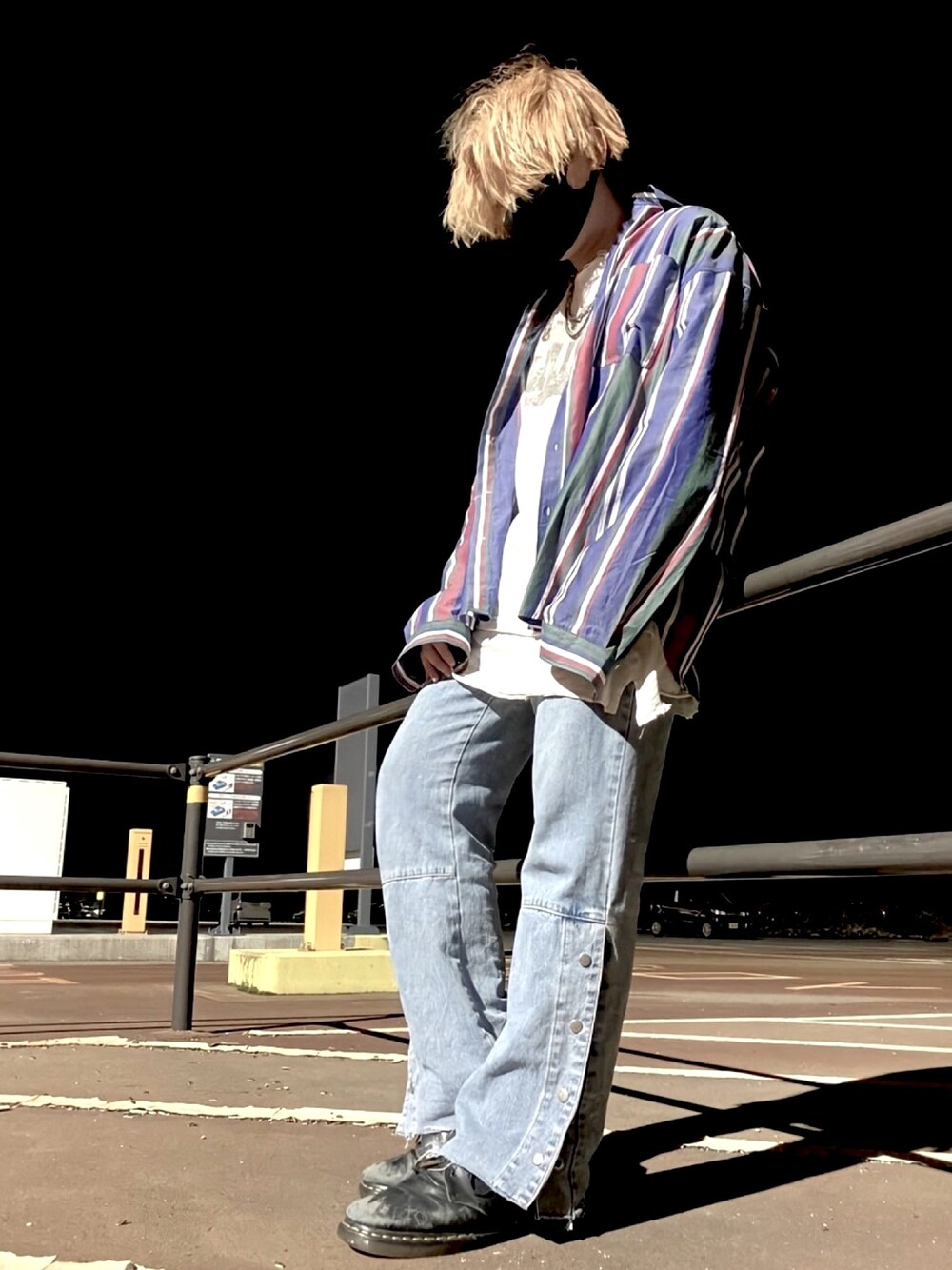 なぐーのシャツ/ブラウス「WEGO/ストライプビッグシルエットシャツ」を使ったコーディネート