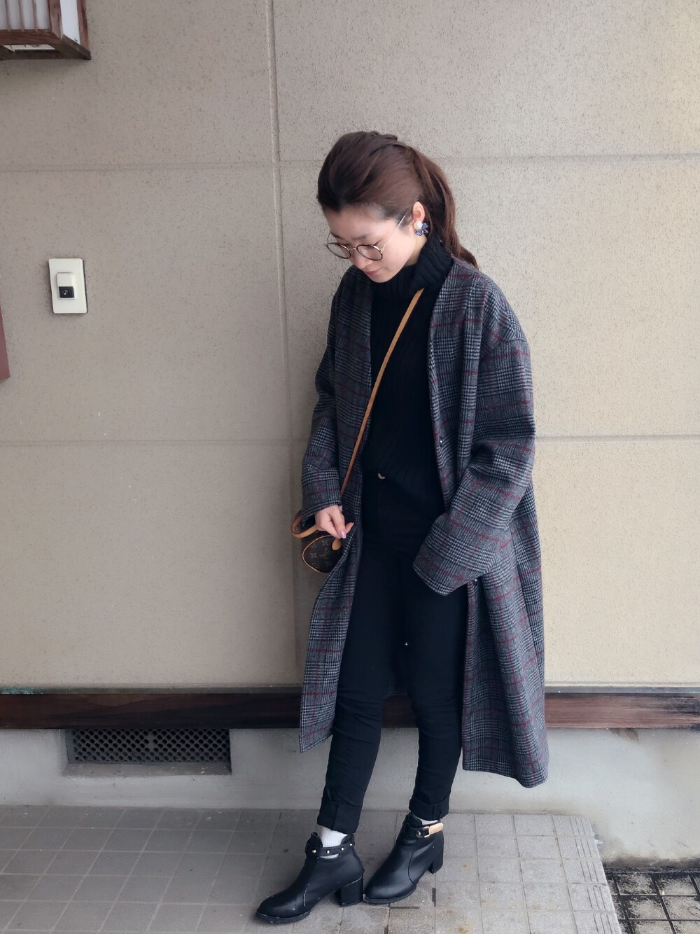 チェスターコート着まわしコーデ✨ 寒さ対策もばっちし! 中は上下黒でまとめました👌 Instagram→y_naomi7