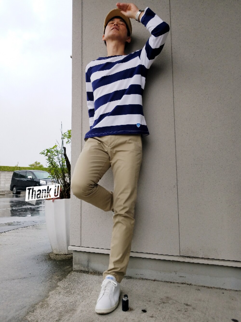 太ボーダー初夏コーデ! このコーデを見に来てくれた皆さん!ありがとうございます😌 先週のコーデでwear友の方の多数が太ボーダーでコーデアップをしてるのを見て、自分も太ボーダー着たくなり、着てみました🙂 でも、ちょっと若作りになりましたかね😅 本日は緊急事態解除してからの初めての休日と言うことで、久しぶりに友人とカフェ☕に行ったのですが、あいにくの雨降り☔ コーデを撮る場所もカフェ☕の屋根があるので場所でなんとか撮りました😅 皆さんは緊急事態解除の休日はどう過ごしてますか('_'?) とりあえず自分は、カフェ☕以外はまだ行くのを辞めて、このあと家に帰りました🙂 もう少し様子をみながら、徐々に行く店を増やしたいと思います😊 それでは、今からwear友や気になる方のコーデを見に行きたいと思います🙋
