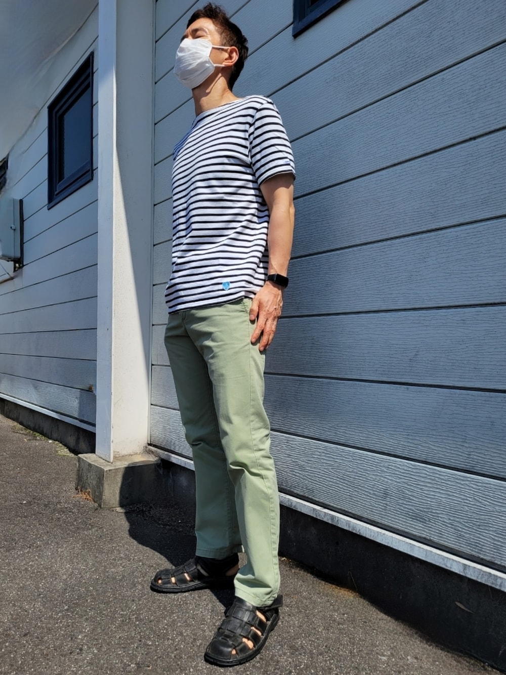 ボーダー真夏コーデ❕ 前回のコーデを素敵なフォルダに入れてくれたマキシさん!たけるさん!Masakazuさん!ホント!ありがとう😉👍️🎶とっても嬉しかったです😀 それから、こんなドシンプルコーデを見に来てくれていいね👍️をつけてくれた方感謝します🙇♂️⤵️ ところで昨日の自分の所は猛暑日で30℃を越える暑さでした🥵 なのでほぼ真夏にするコーデになってます🙂 話は変わりますが、先月行きつけの美容室😃✂️✨に行った時の話ですが今まで名字でさん付けで呼んでいた若いスタッフが急に名前でさん付けで呼んできてちょっとドキッ❗😵💓としました(/-\*) 多分、名前の方が呼びやすかったと思いますが他のスタッフやカット担当も名字にさん付けなのでホント!ドキッ❗としました🙂 なんかただそれだけなのに、なんか鼻の下が伸びまくったmandreamでした😅 こんなお爺ちゃんのmandreamですが、懲りずにまだwearを続けて行くので、時々投稿の自分ですが良かったら、また見に来て下さいね😇