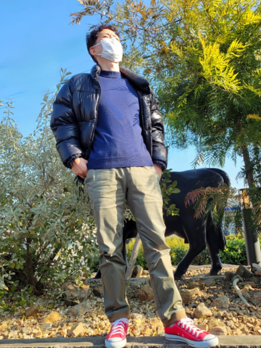 お久しぶりです。 赤コンを久しぶりに履いてコーデしました。
