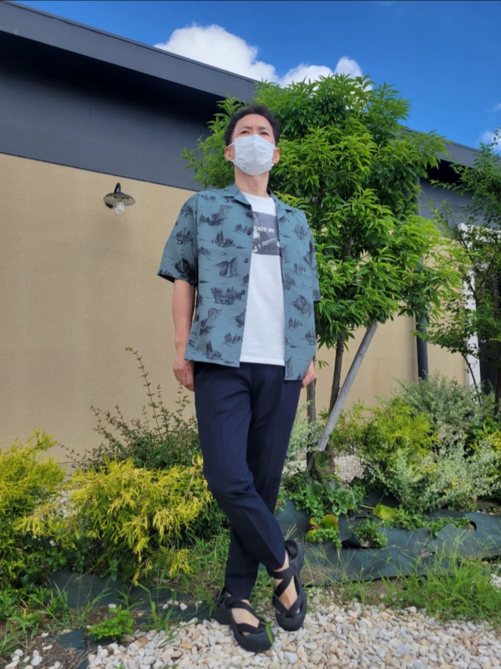 ノース柄シャツで珍しいアロハ柄シャツがあり、ノースの雰囲気と違って一目惚れで購入、これにプリントTの重ね着でオシャレ度アップしてみました。