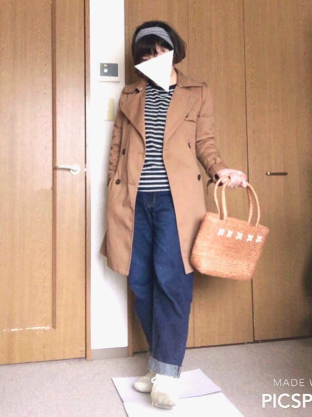 暖かくならないかなー🍃 ローリーズファームのトレンチは真面目すぎず 遊びすぎずで着やすいコートです! カゴバッグはどこのものかわかりませんが、 これからの季節に良いですね*