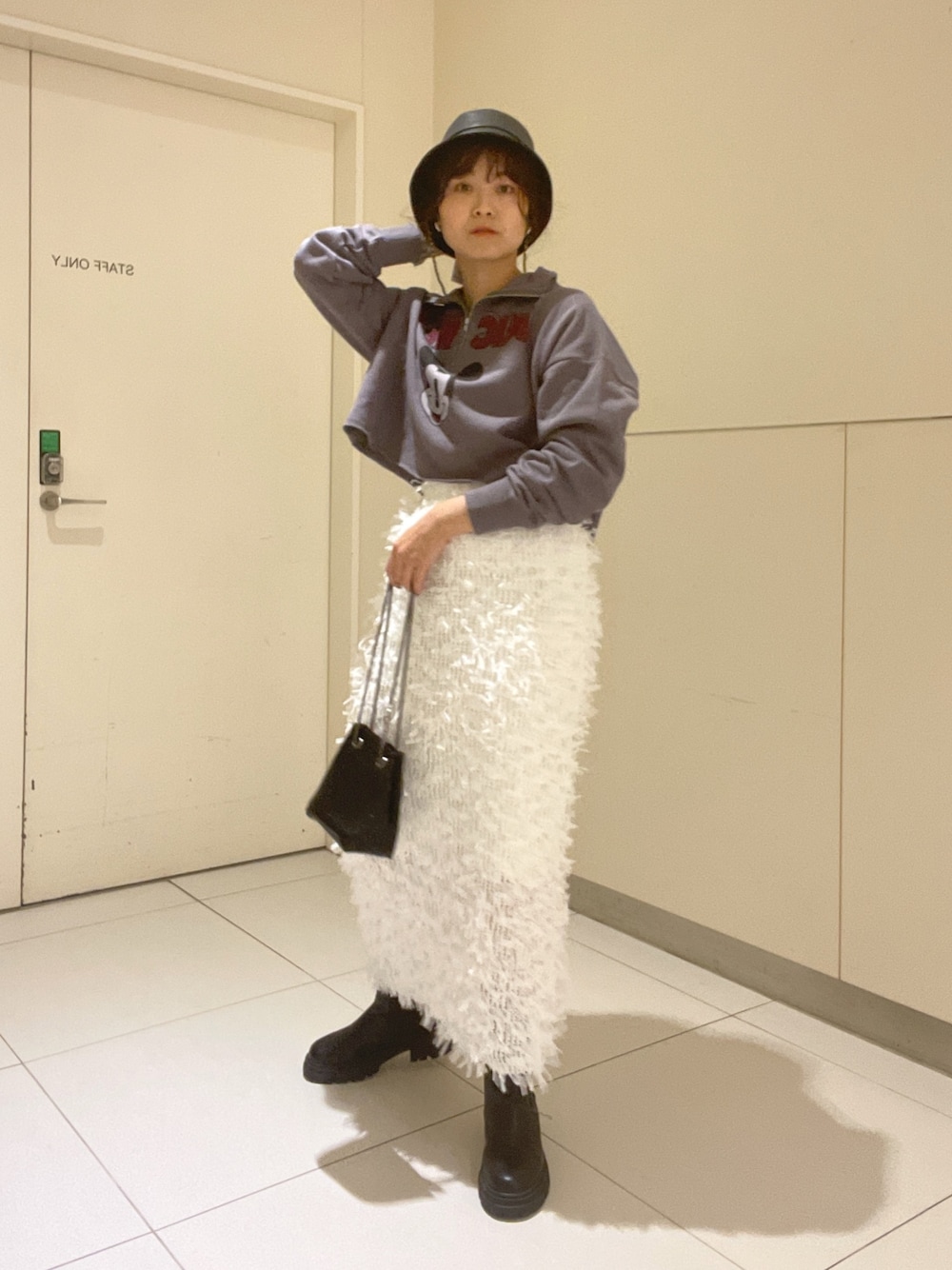 ************************* 骨格:ストレート パーソナルカラー:イエベ/普段サイズ:M WEAR▷▷@yndmi ************************* ・スウェット(ブラック/サイズFR) ミッキーのコラボスウェット。短丈デザインでボリュームあるボトムスとの相性◎ ・スカート(ホワイト/サイズM) コレクションのチュールスカートをスウェットでカジュアルダウンさせました。ニットやシャツ合わせでも可愛い素材感です。 ・ハット(ブラック) 取り外しのできるチェーンが付いてるバケットハット。アクセサリー感覚で使えるのでネックレスいらずです。