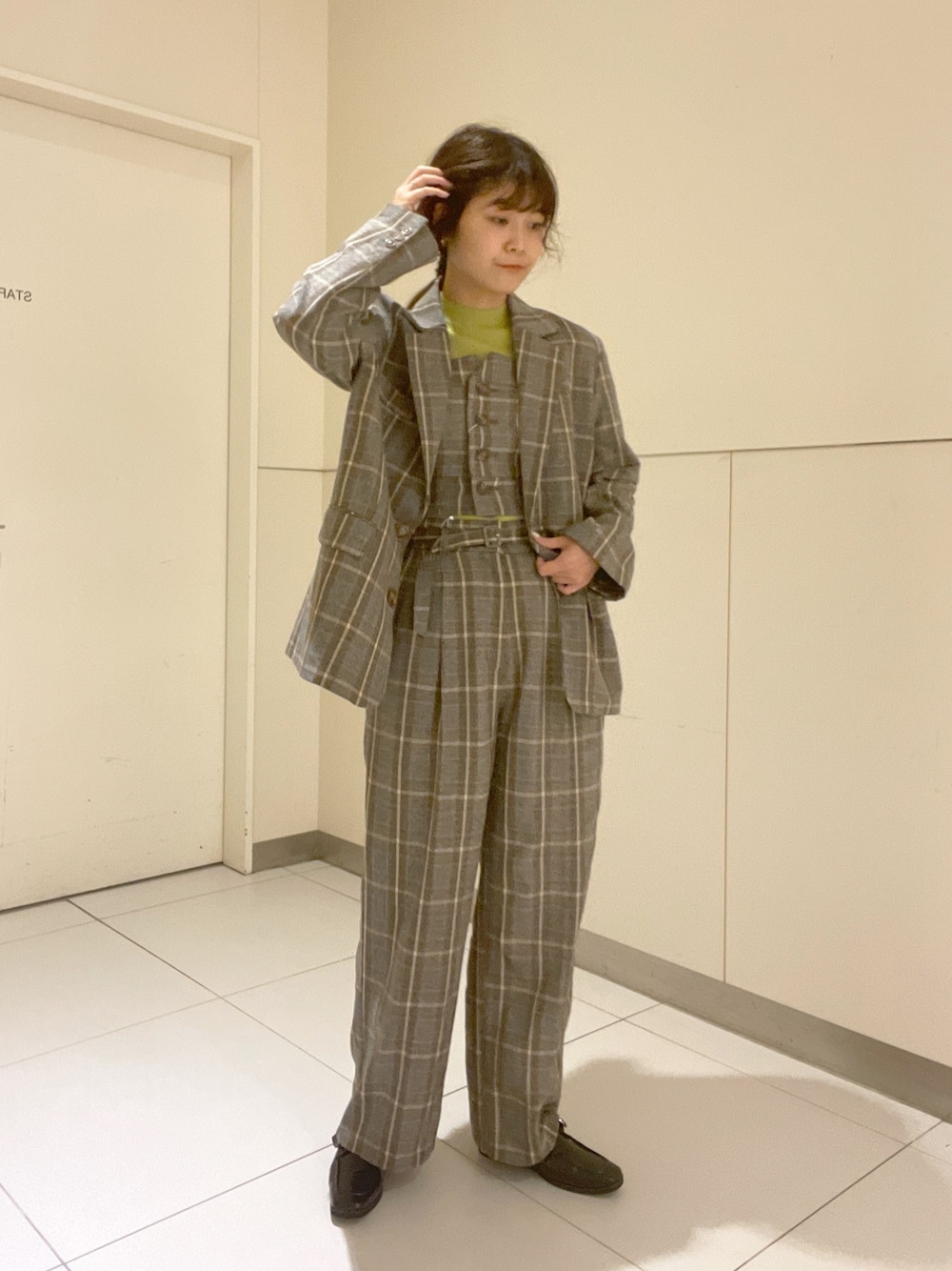************************* 骨格:ストレート パーソナルカラー:イエベ/普段サイズ:M WEAR▷▷@yndmi ************************* ・ジャケット(グレー/サイズM) 大きめチェックが目を惹くジャケット。ゆるめなシルエットで冬には肉厚なニットも着込めます。 ・パンツ(グレー/サイズM) セットアップで着るとトラッドな印象に。ウエストには細ベルトも付いていて、インスタイルもすっきりと着れます。 ・ビスチェ(グレー/サイズFR) 後ろはゴムが入っていてフィット感のあるビスチェ。コンパクトなニットやブラウスとの合わせがおすすめです。