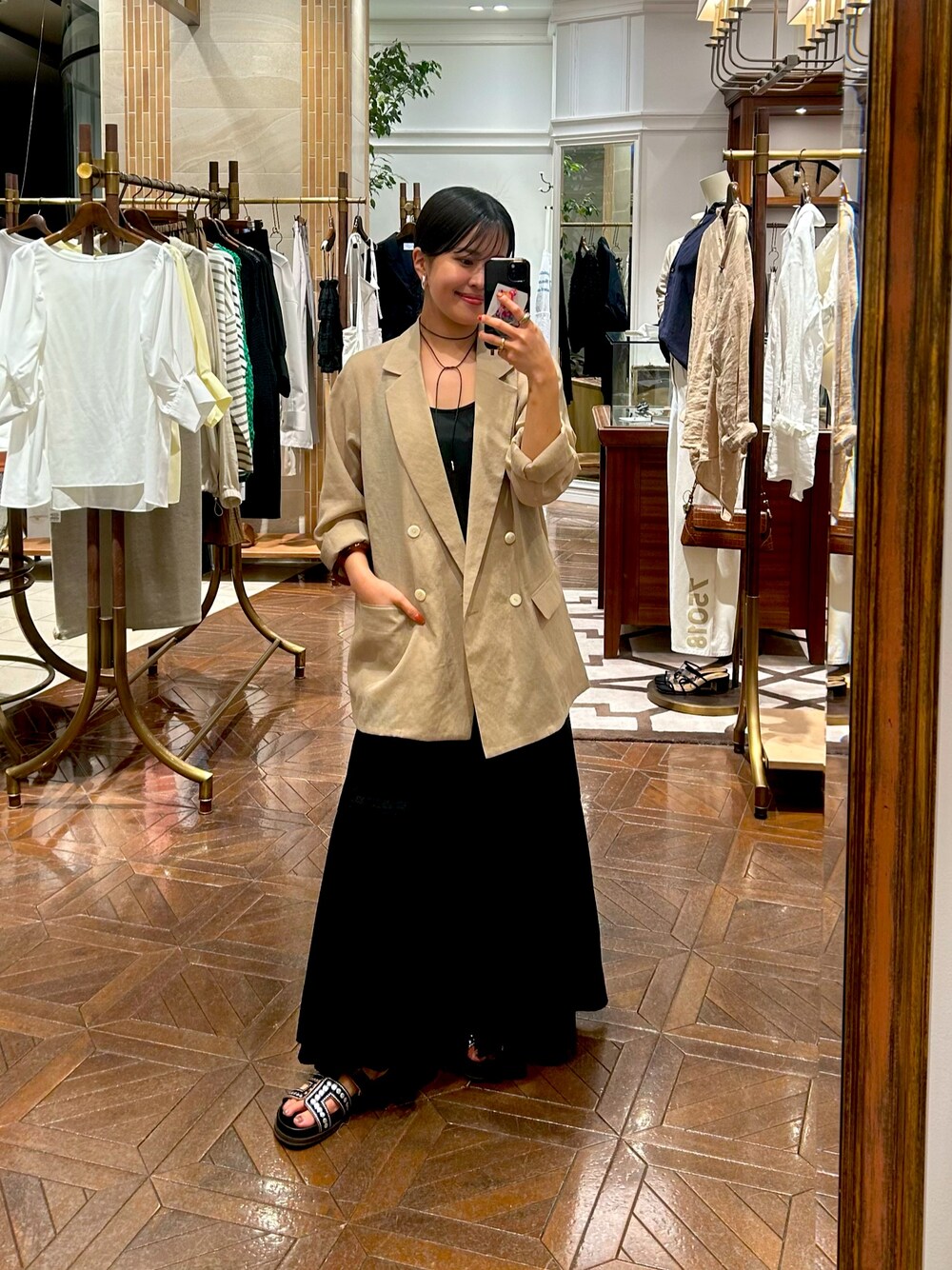 のん(Loungedress)のテーラードジャケット「リネンライクシアージャケット」を使ったコーディネート