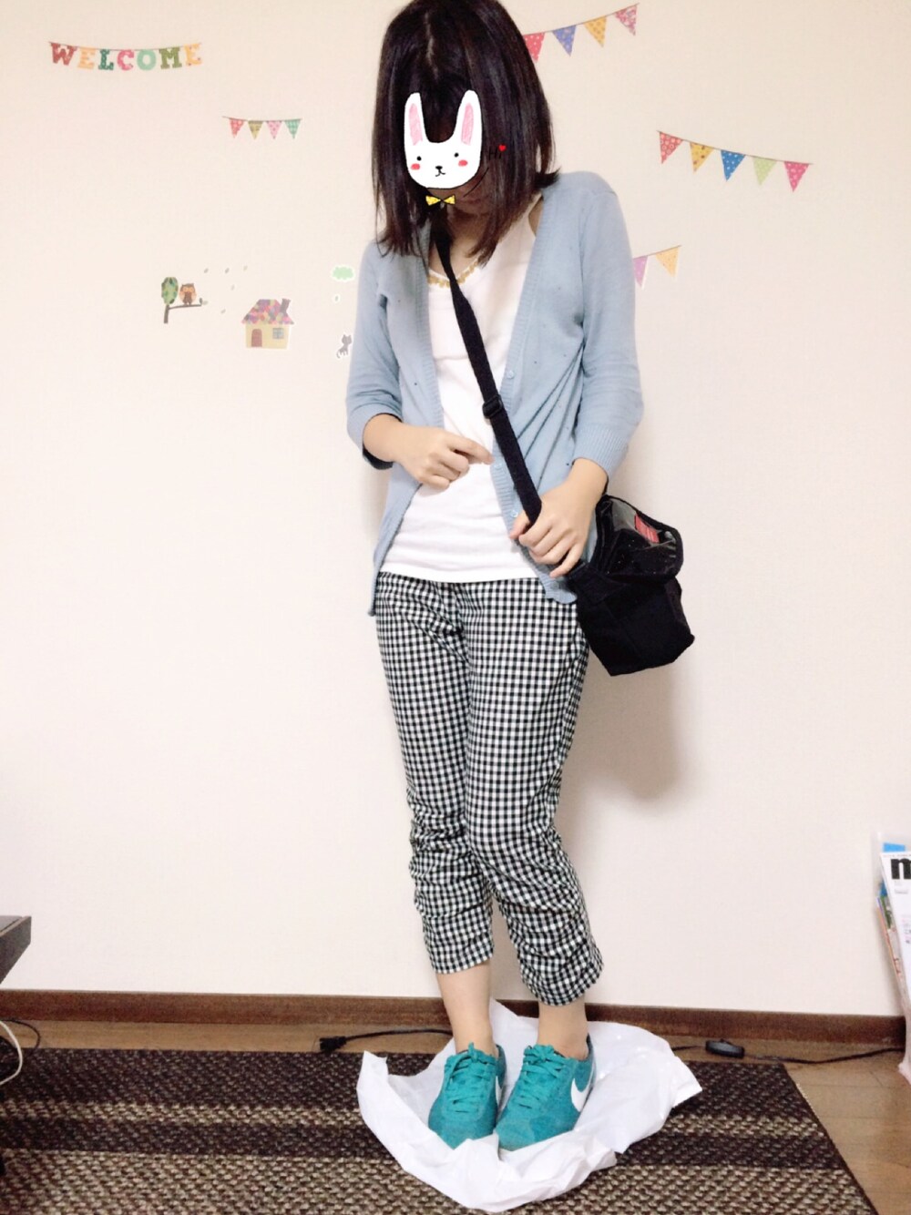 台風上陸🌀 外出の際、袖や裾が濡れないように 七分袖。七分パンツ。笑 傘をさすので、両手が空くように ショルダーバック(*^_^*)