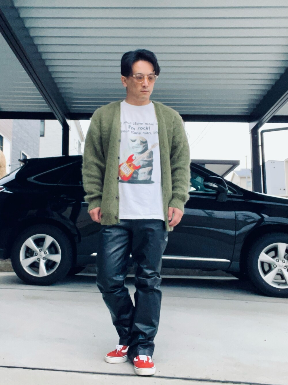 見てくれてありがとう! モヘアカーディガンコーデ ワンポイントに 皮パン使うだけで 一味違う感じになるよ