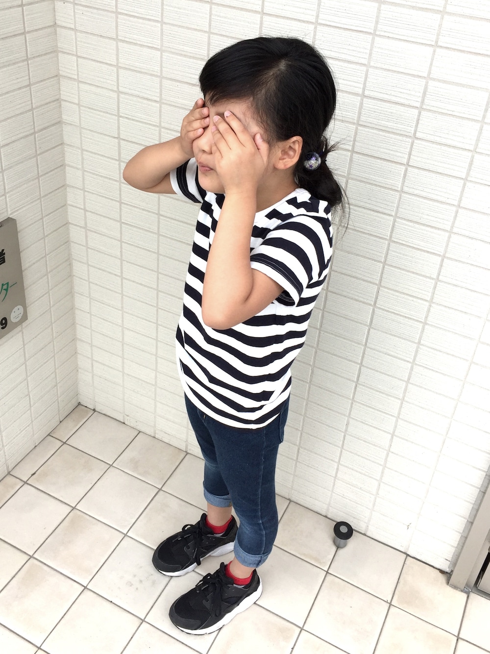 この前と一緒じゃん‼️Tシャツ変わっただけじゃん‼️って感じです。。。😥 日曜で天気が良ければ決まって外で遊ぶことになるから、やっぱりプティマインのジーンズは登場してしまう。。。>_<とにかく使えるということです♡ 見えてないけど、腰に赤のバンダナ巻いてます☆やっぱりこの前と一緒じゃん‼️ですね😥