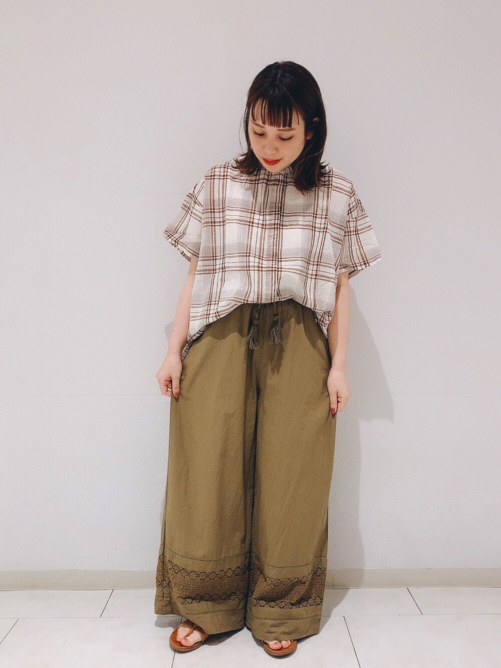 ブラウン系でまとめたコーディネート🧸 今年人気のバンドカラーのブラウスは前開きにして羽織っても可愛いです◎ 裾レースパンツは入荷直後から超人気アイテムです!もちろんワンピースの下に履いて頂いても素敵ですよ🌿
