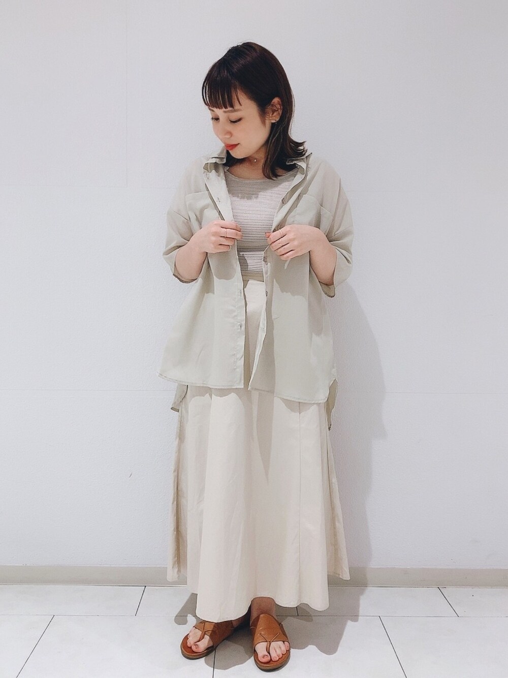 本日はsamansamos2 blueのアイテムでワントーンコーデ🌿 今年流行りの透け感のあるブラウスは1枚もっておきたいですよね! スカートもシルエットがとっても綺麗なのでオススメです🙆🏻♀️