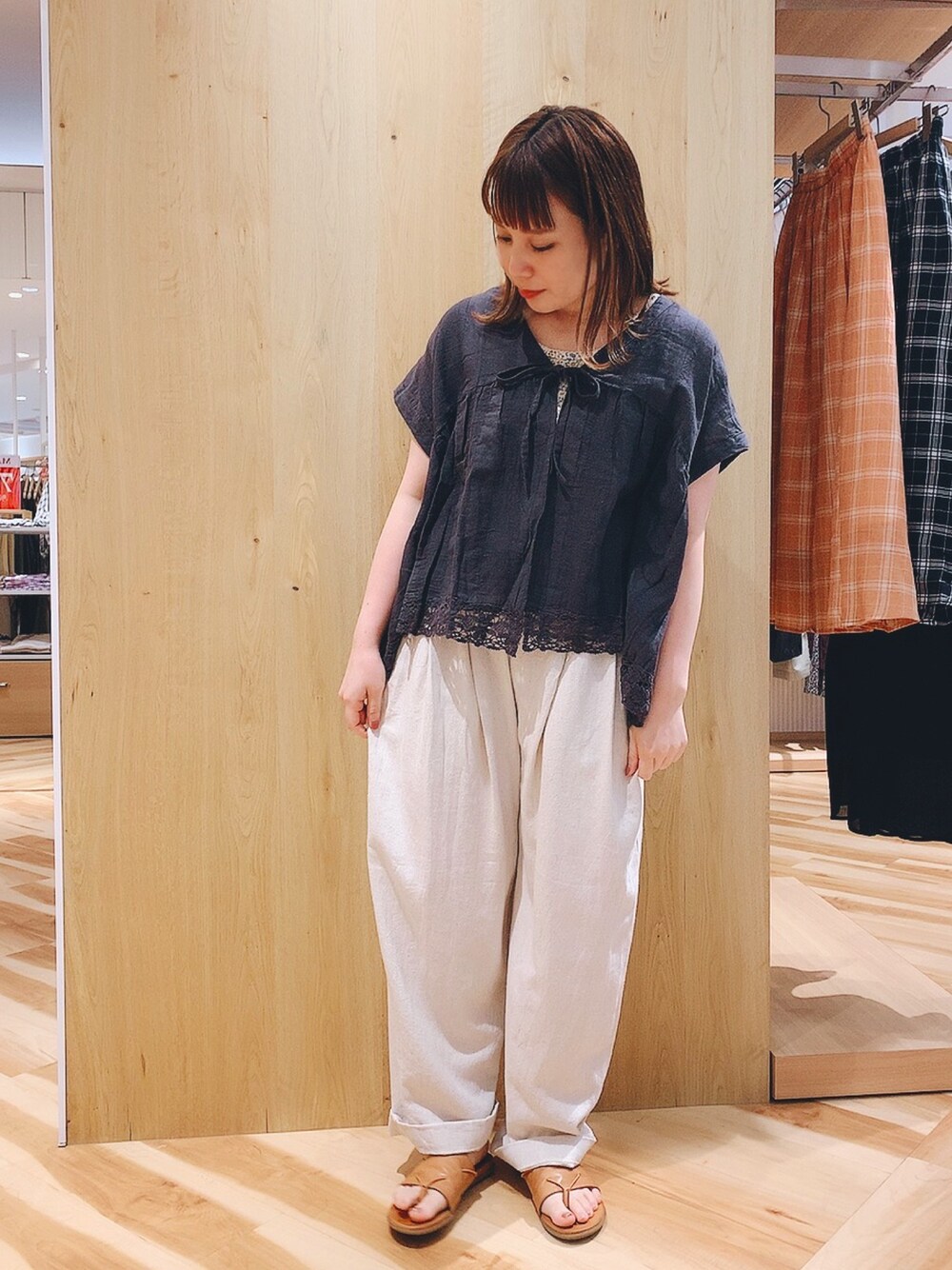 yunaのシャツ/ブラウス「裾レースはおりブラウス」を使ったコーディネート