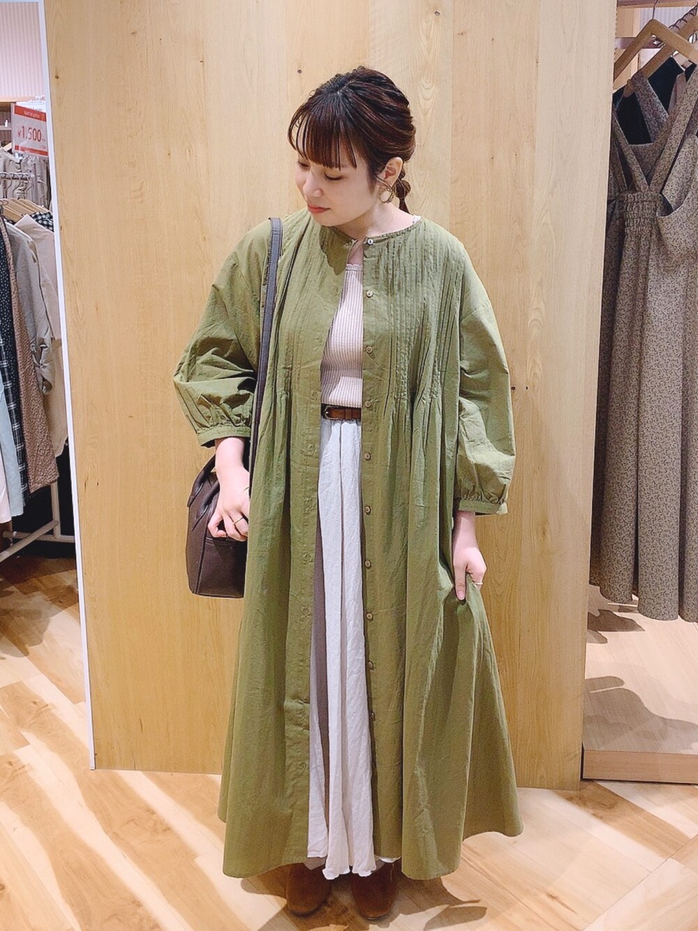 前回のスカート着回しコーデです🍂 ワンピースを主役に! 私が普段あまり着ない系統のコーデをスタッフが組んでくれました🙆🏻♀️ お気に入りのコーデです♡