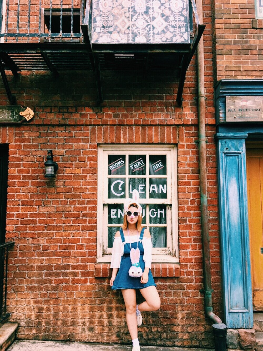 悪天候の中ディズニーいってきました🙄💓 今日は友達と デニム×白で統一♡♡ みなさんもうさみみつけて エッグハントしにいってみてください🐰❤