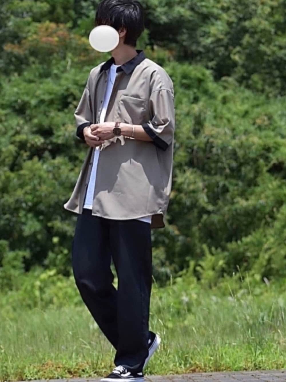 y_Oのシャツ/ブラウス「イージーケア ビッグシルエット 襟配色 クレリック半袖シャツ【Confirm】」を使ったコーディネート