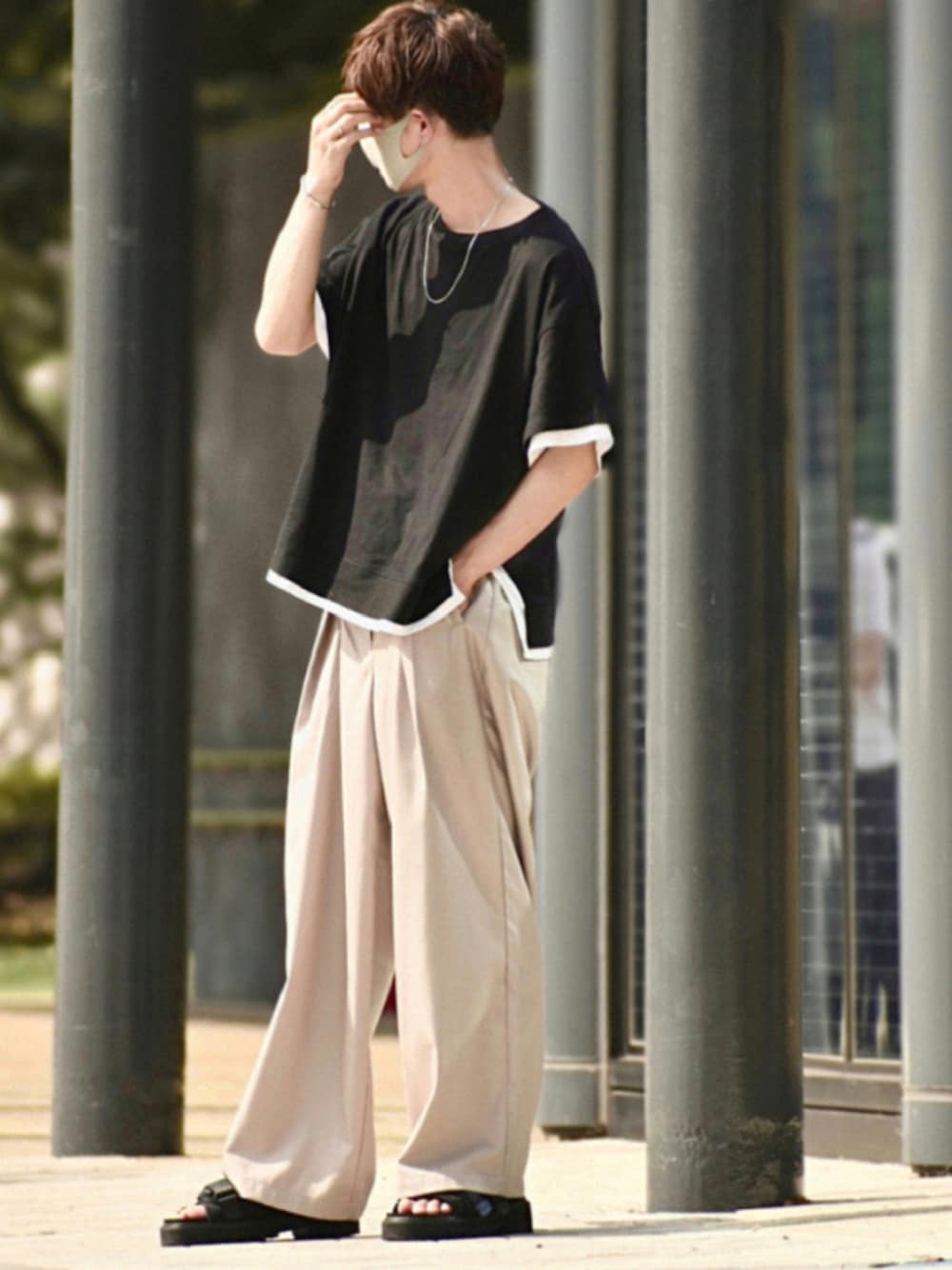 y_OのTシャツ/カットソー「フェイクレイヤード オーバーサイズ クルーネック半袖カットソー」を使ったコーディネート