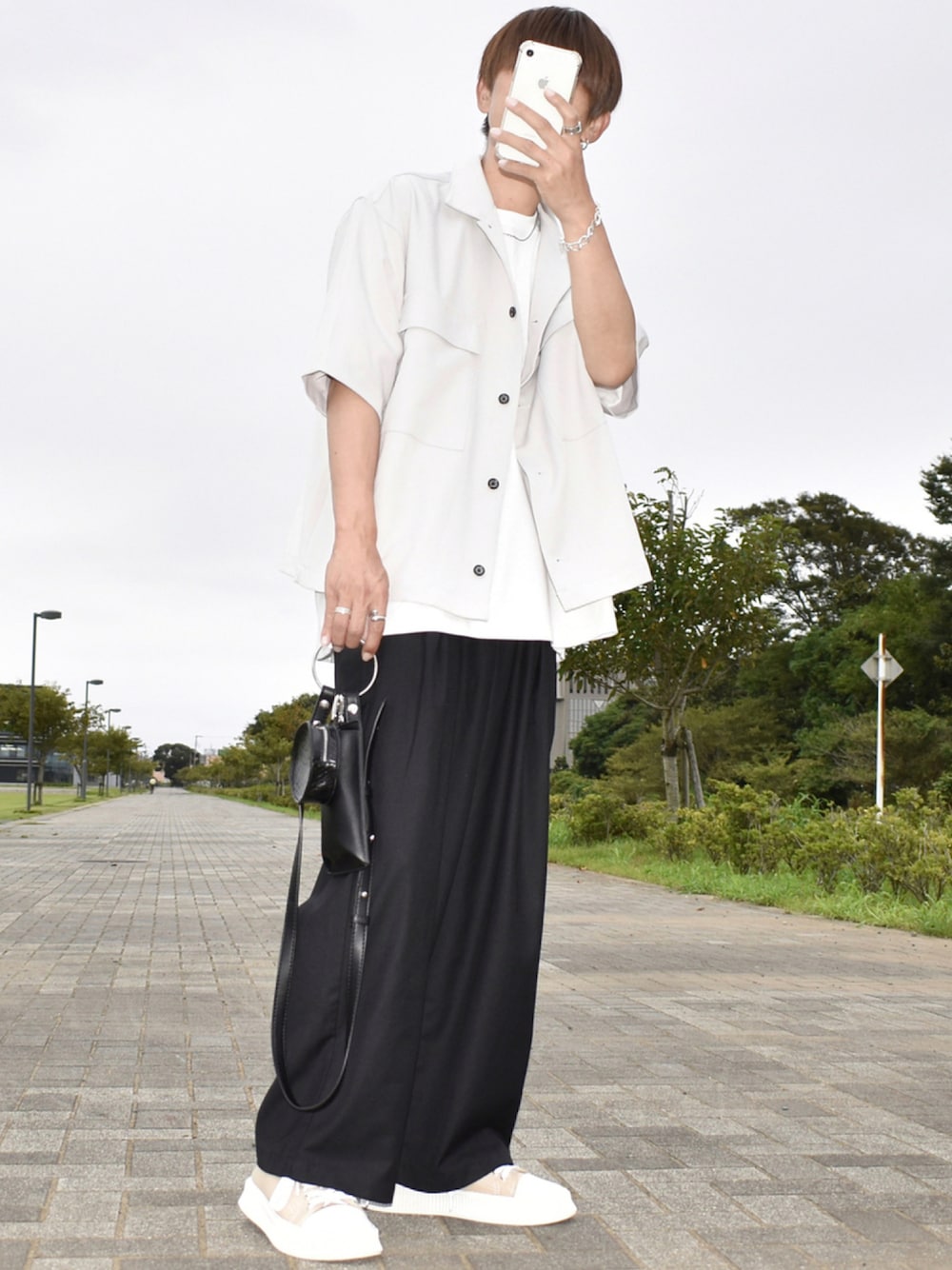 y_Oのシャツ/ブラウス「TRストレッチ スーツ地 オーバーサイズ ドレープ CPOシャツ/レギュラカラーシャツ(1/2 sleeve)」を使ったコーディネート