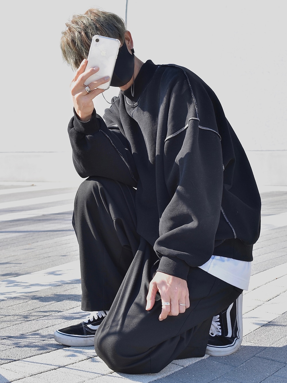 y_Oのスウェット「ステッチ配色オーバーサイズ裏起毛スウェット」を使ったコーディネート