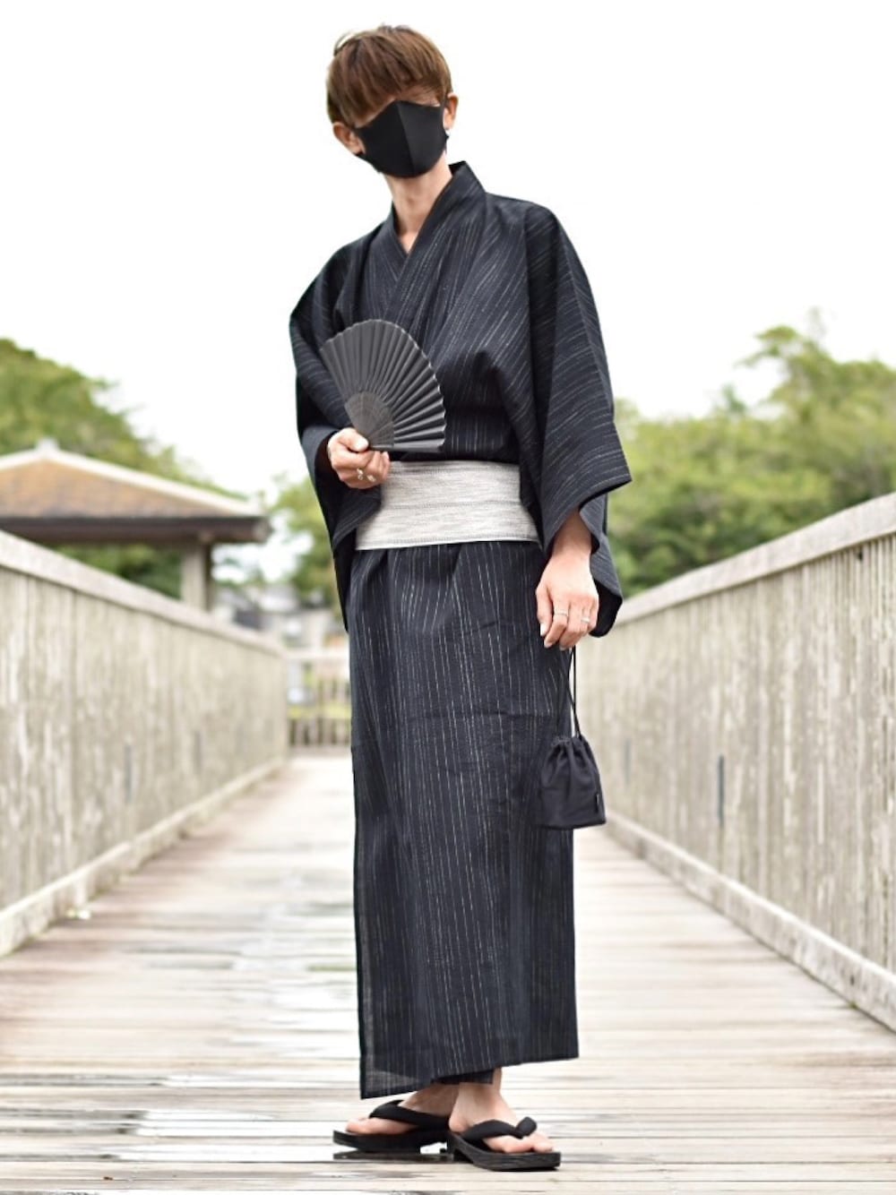 y_Oの浴衣「【4点セット】しじら織り浴衣 帯 下駄 扇子 4点セット」を使ったコーディネート