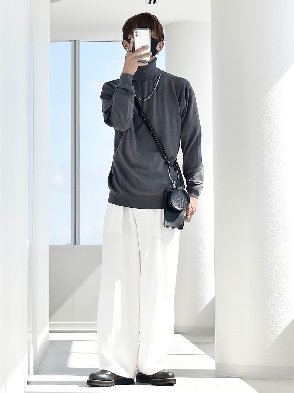 y_Oのニット/セーター「ハイゲージ編み ハンドウォッシャブル / タートルネック セーター」を使ったコーディネート