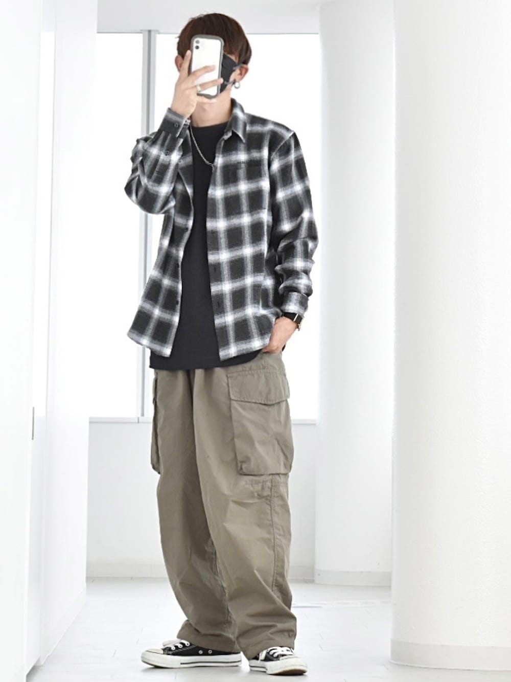 y_Oのシャツ/ブラウス「【SOMEDIFF】ピグメント加工オンブレチェックネルシャツ メンズ ブロックチェック 長袖シャツ ビッグシルエット 春服」を使ったコーディネート