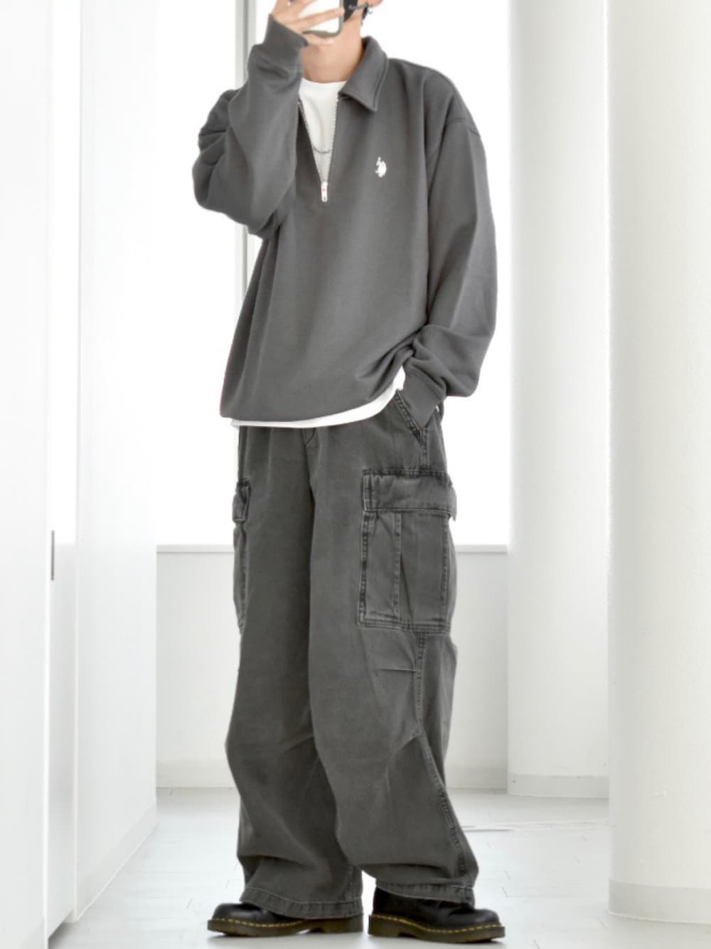y_Oのスウェット「【U.S. POLO ASSN. /ユーエスポロアッスン 】別注 ワンポイント刺繍ロゴ オーバーサイズハーフZIP プルオーバー<ユニセックス>」を使ったコーディネート