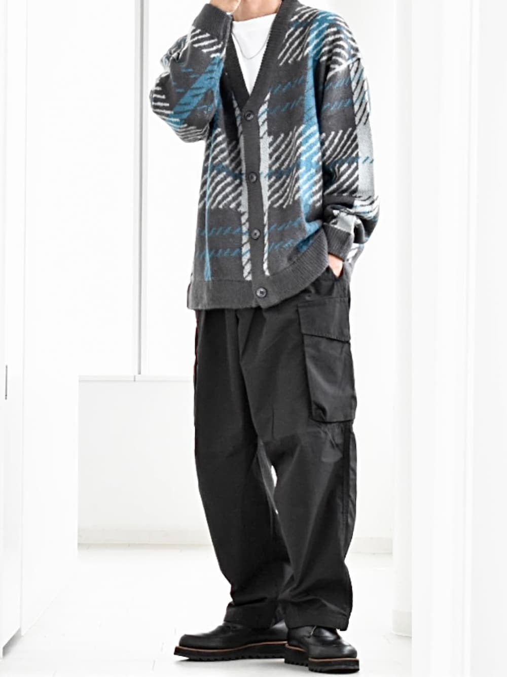 y_Oのカーディガン/ボレロ「シャギー加工 チェック柄ニットバルーンカーディガン」を使ったコーディネート